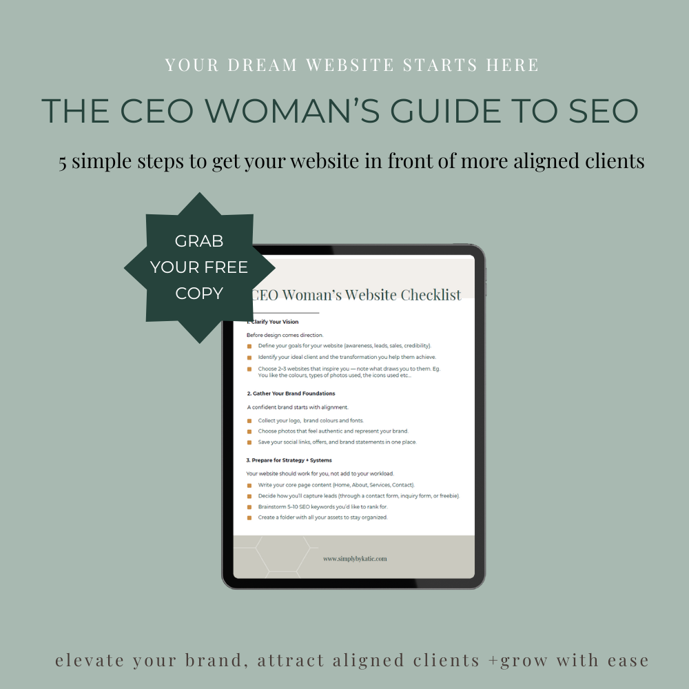 At Simply by Katie we believe that every woman in business should be supported in their website journey. That’s why we created these free resources. Whether you are looking for a comprehensive website planning guide, a simple 3 step website checklist or need help getting started with setting up SEO on your Squarespace website, we’re here to help!